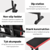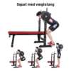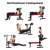- Multifunktionel træningsbænk – Justerbar bænk med dip station og benstrop til skrå mavebøjninger.
