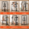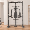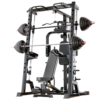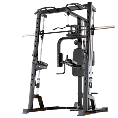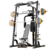 - Smith-stativ: Smith-stativet giver dig mulighed for at udføre øvelser som bænkpres og squats med ekstra sikkerhed og stabilitet. Det tilpassede, tiltede rør, sikrer en mere naturlig bevægelse under træningen, hvilket øger komforten og effektiviteten.